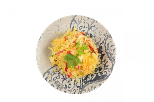 Varza, morcov, apio, ardei, patrunjel, oregano, ulei masline extravirgin, lamaie
